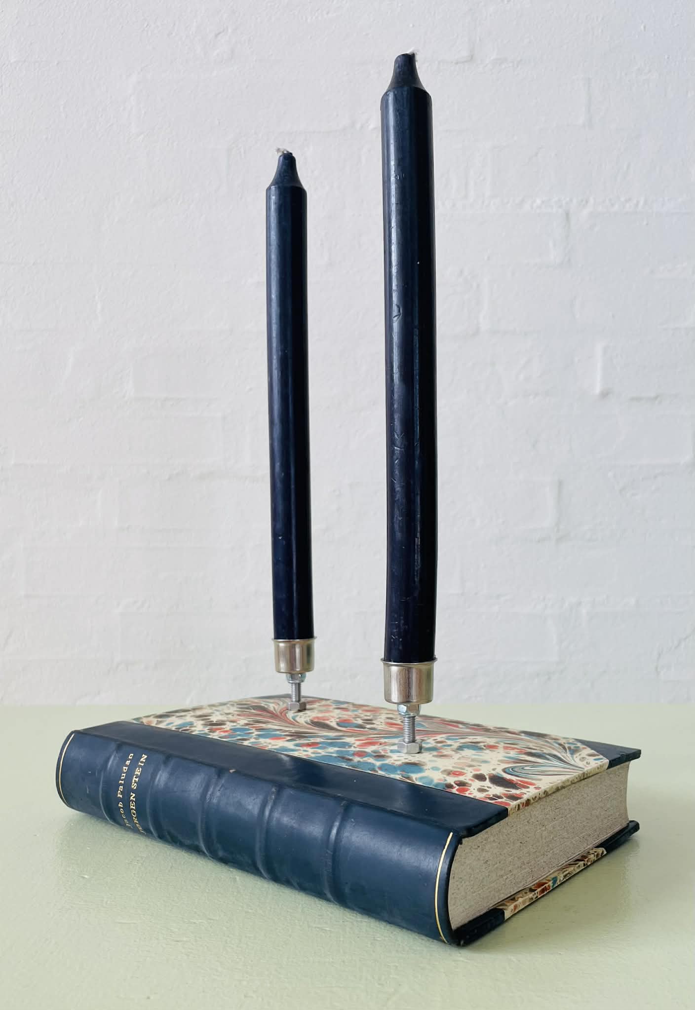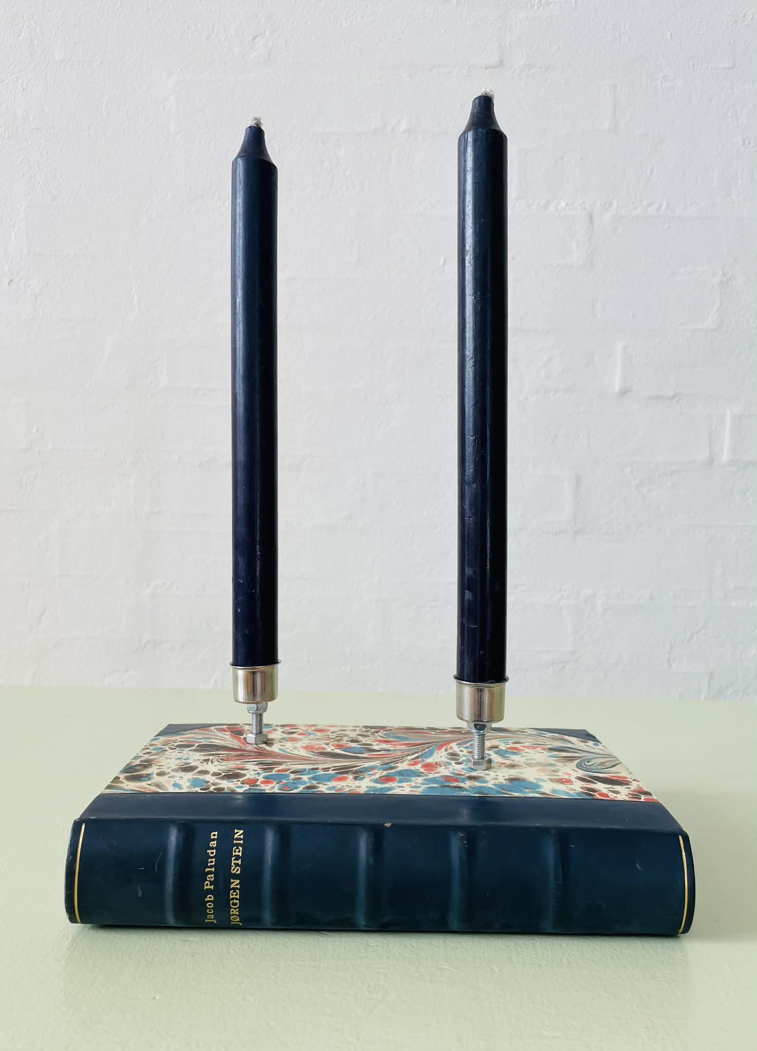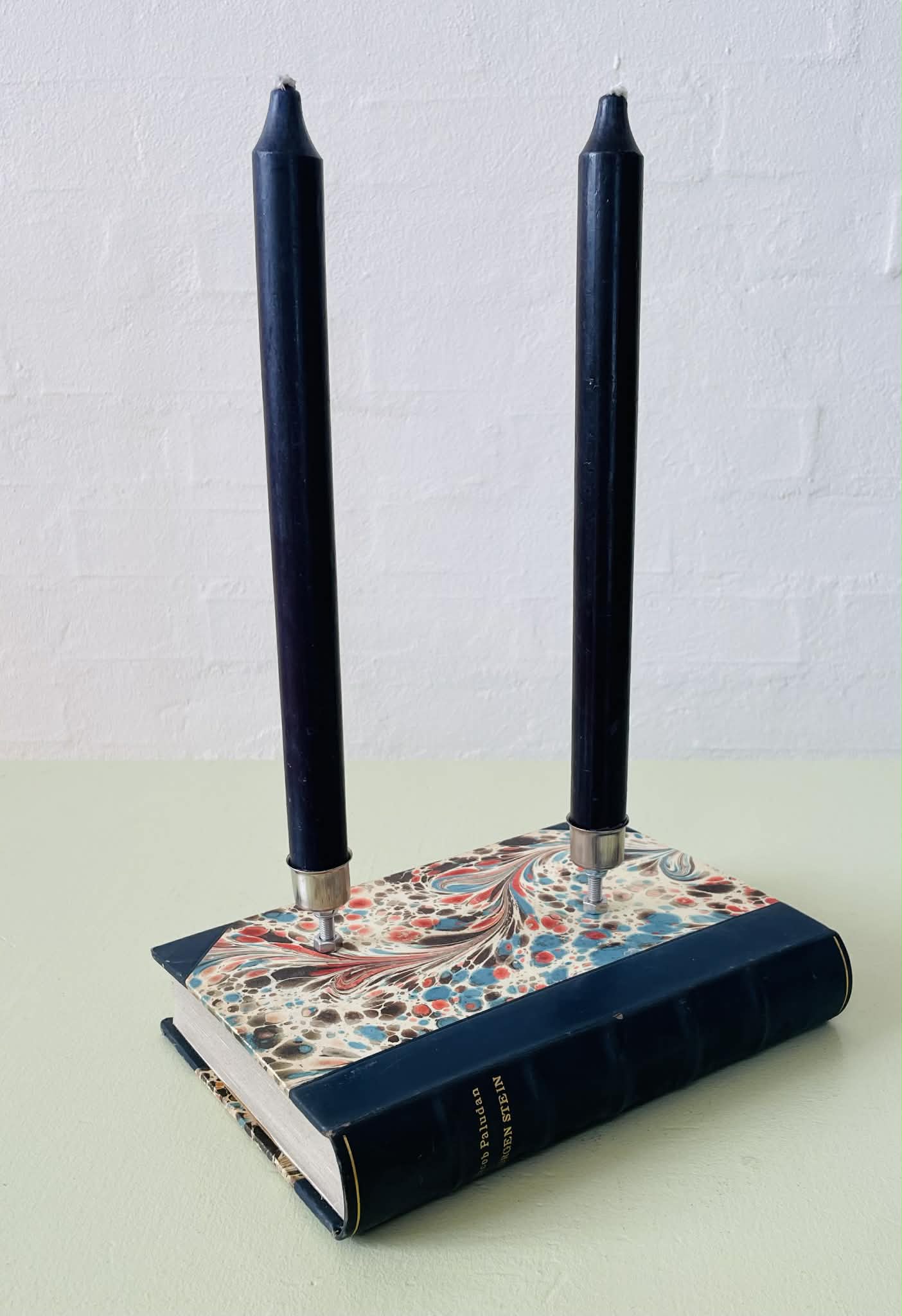 Lysestage lavet af en fin, ældre bog.