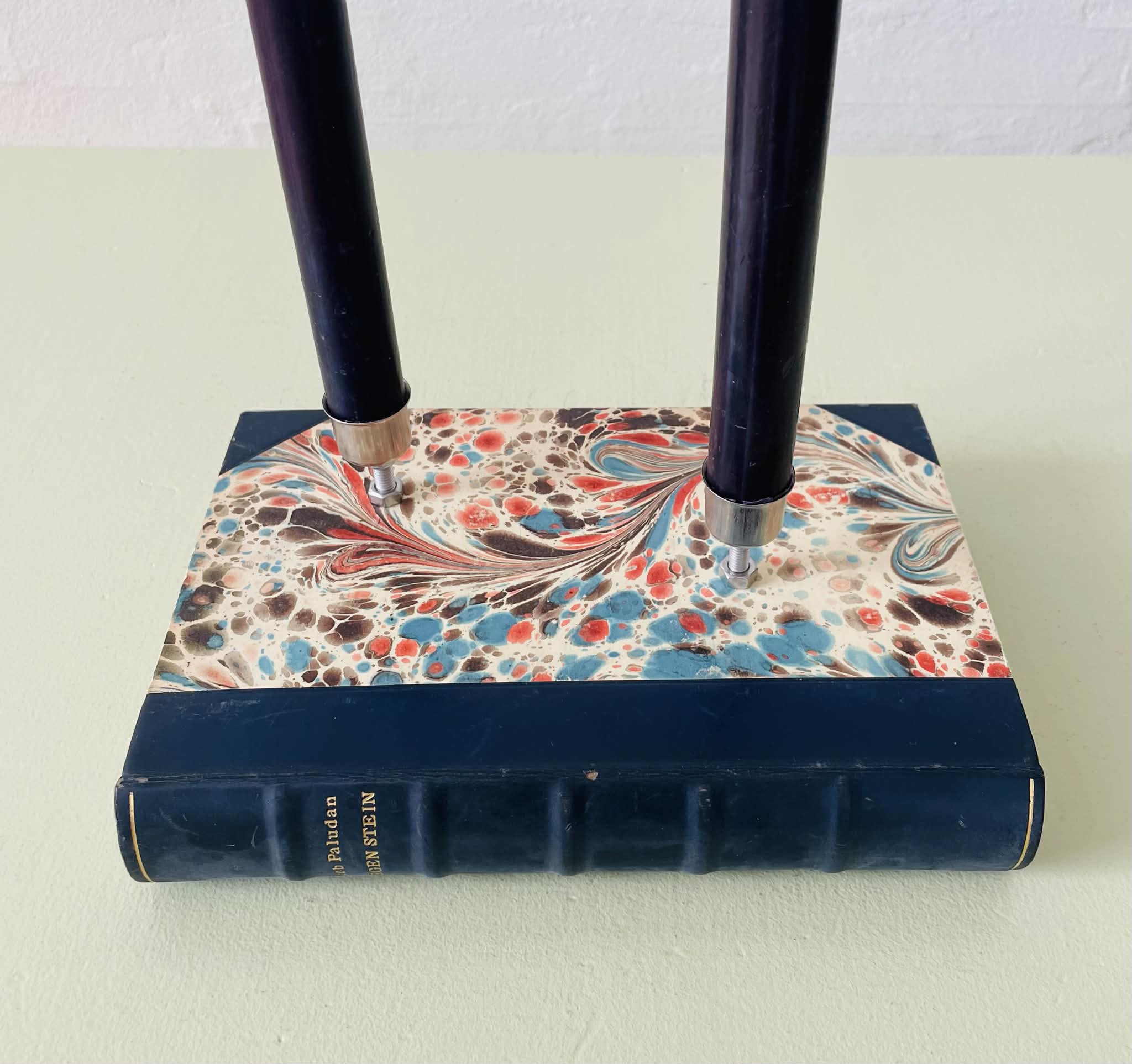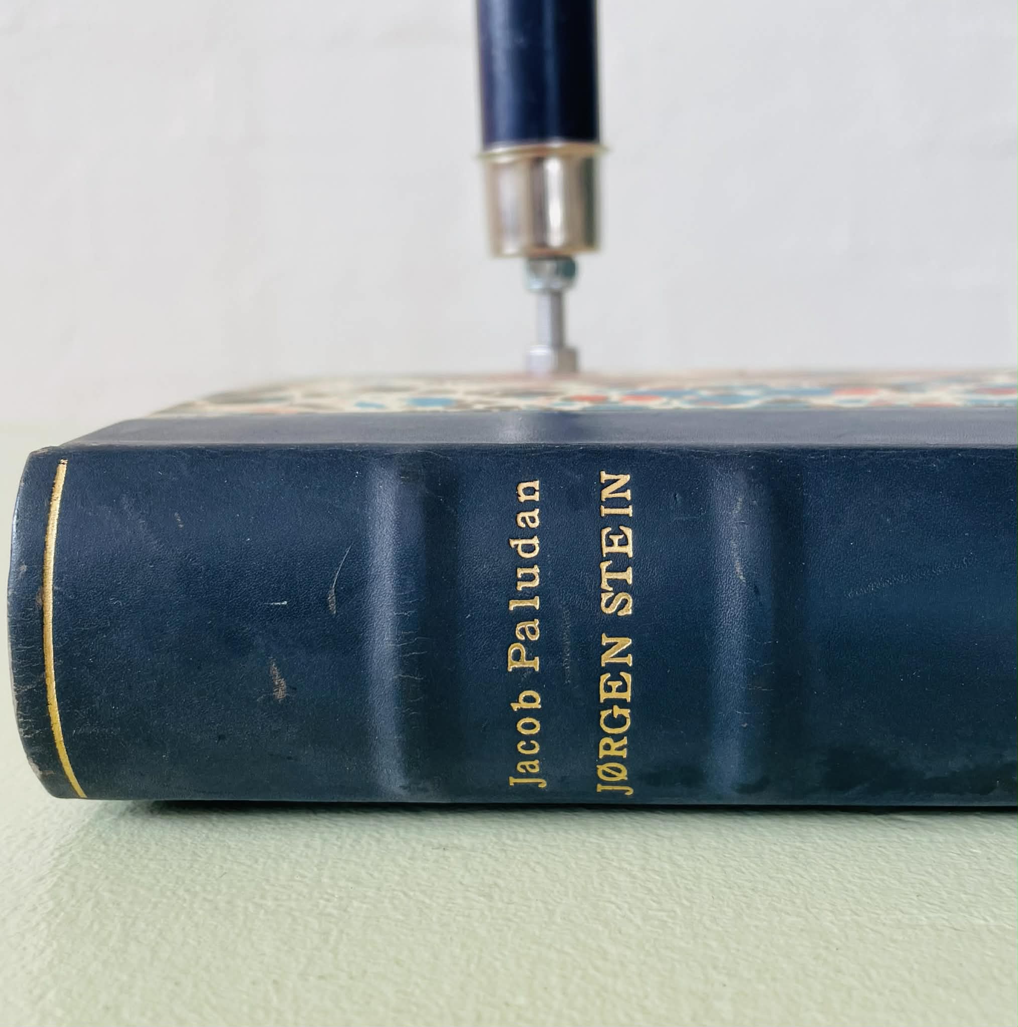 Boglysestage lavet af en fin, ældre bog og to lysholdere i metal til alm. størrelse stearinlys. Siderne er lakeret sammen, så man ikke kan åbne bogen. Bogen er af ældre dato, så den har masser af patina, hvilket kun gør den endnu mere hyggelig. Forfatter: Jacob Paludans “Jørgen Stein””. Sælges uden stearinlys.