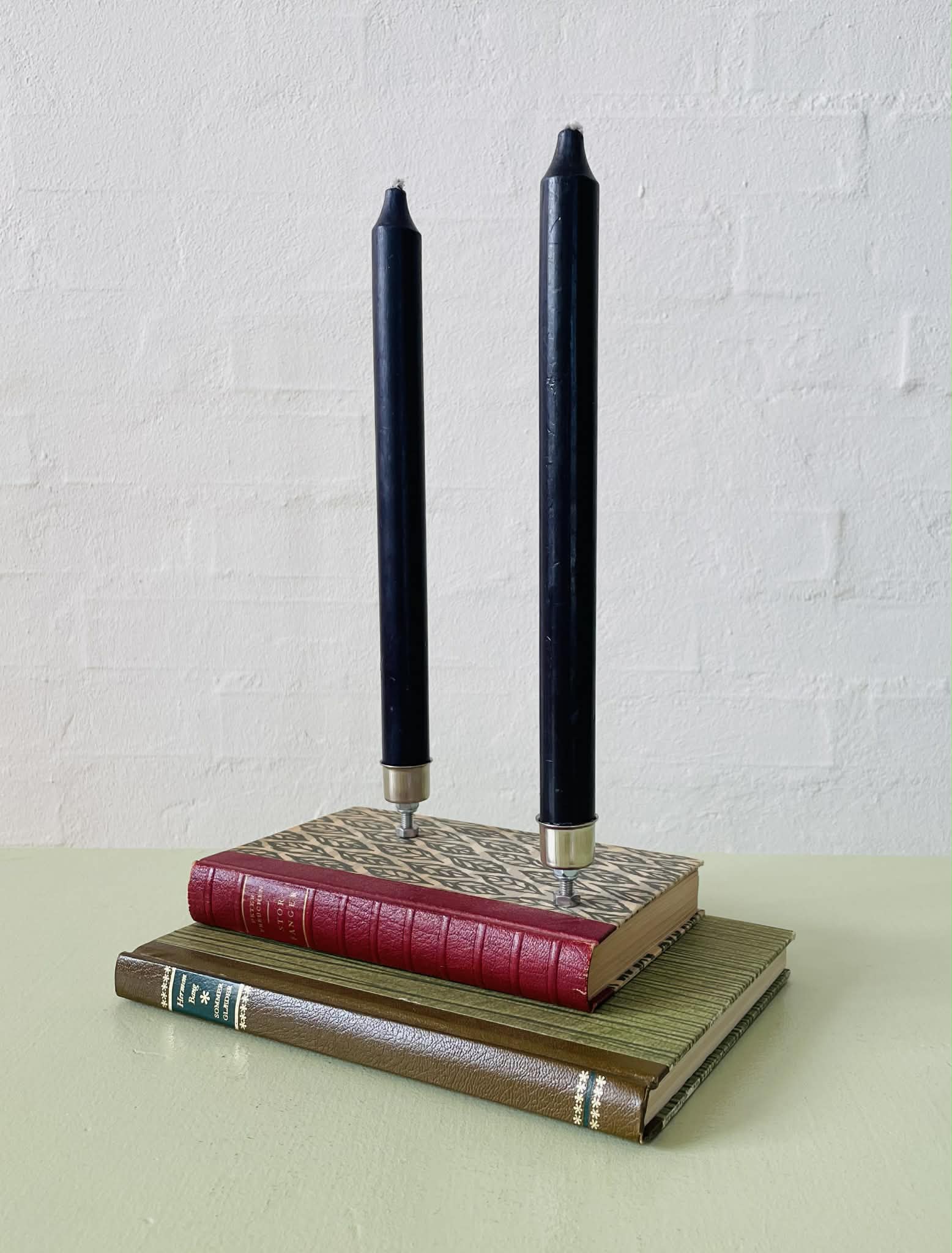 Lysestage lavet af en fin, ældre bog.