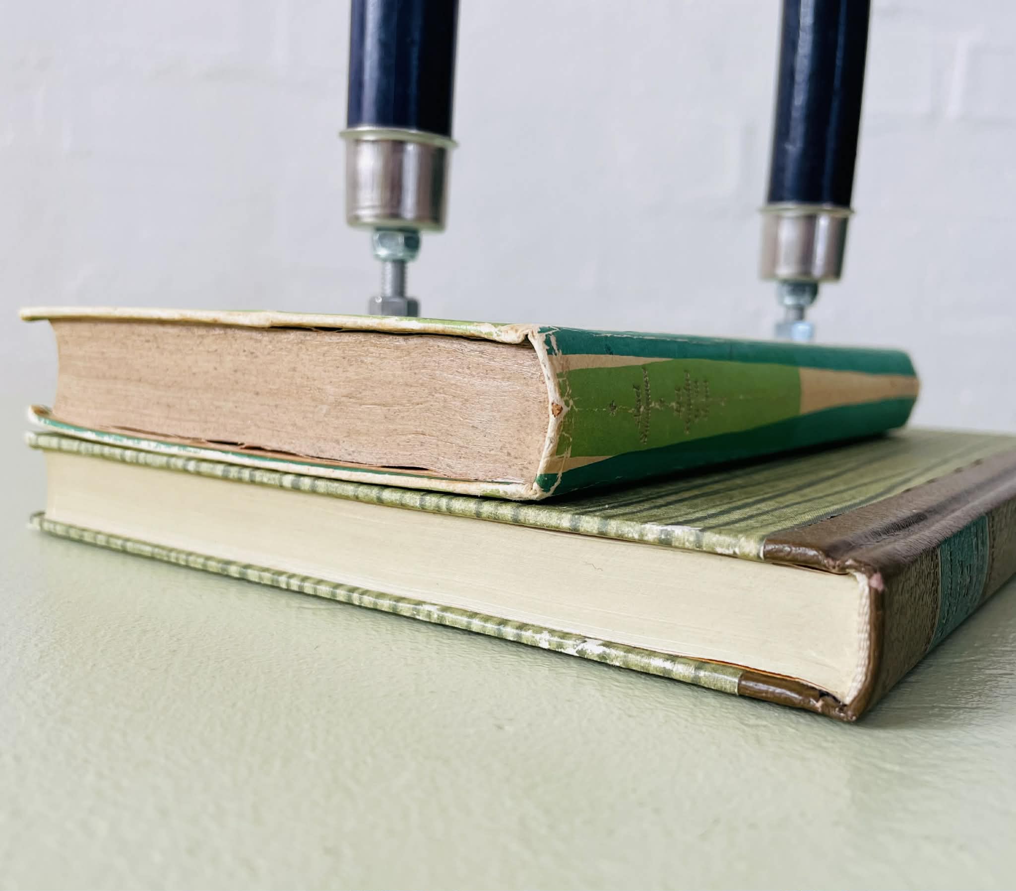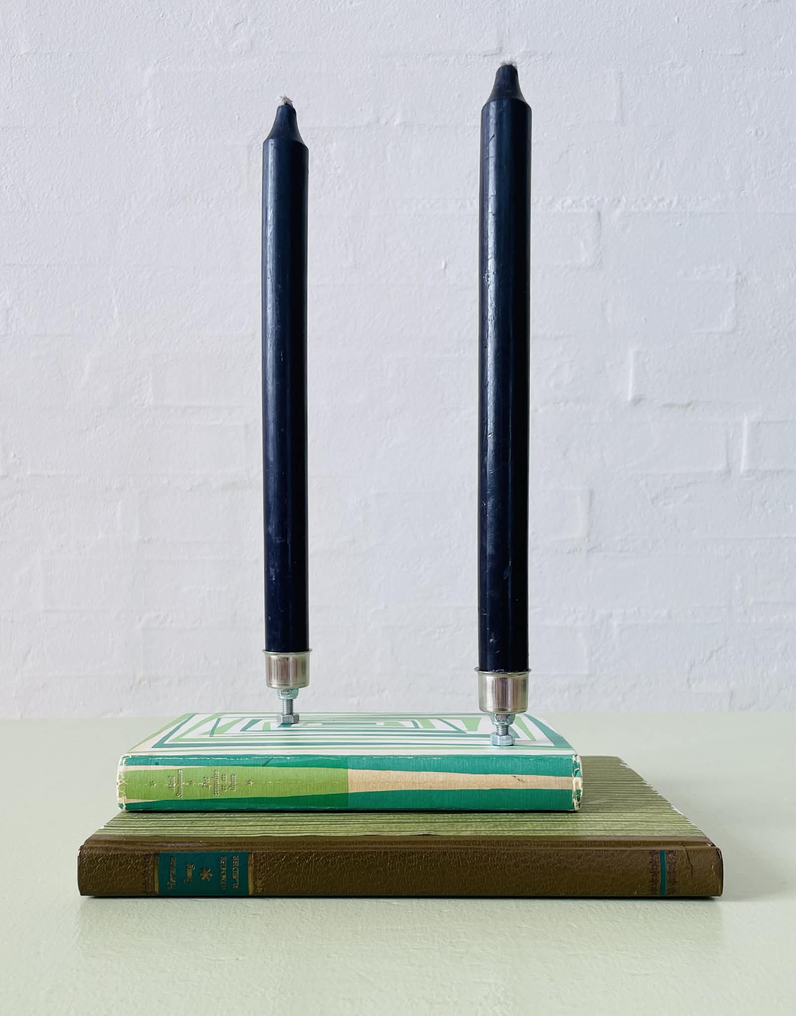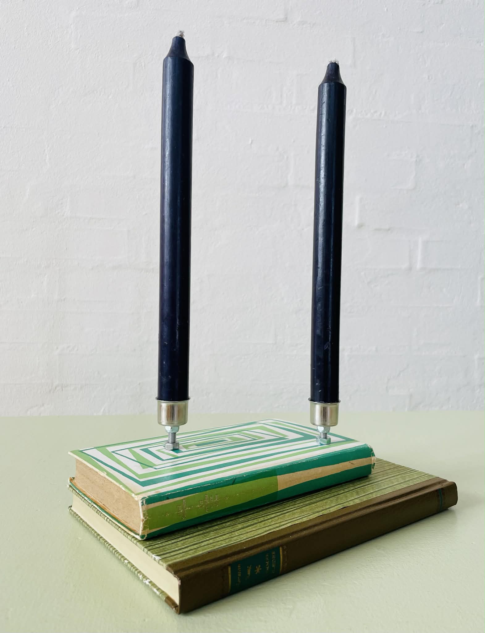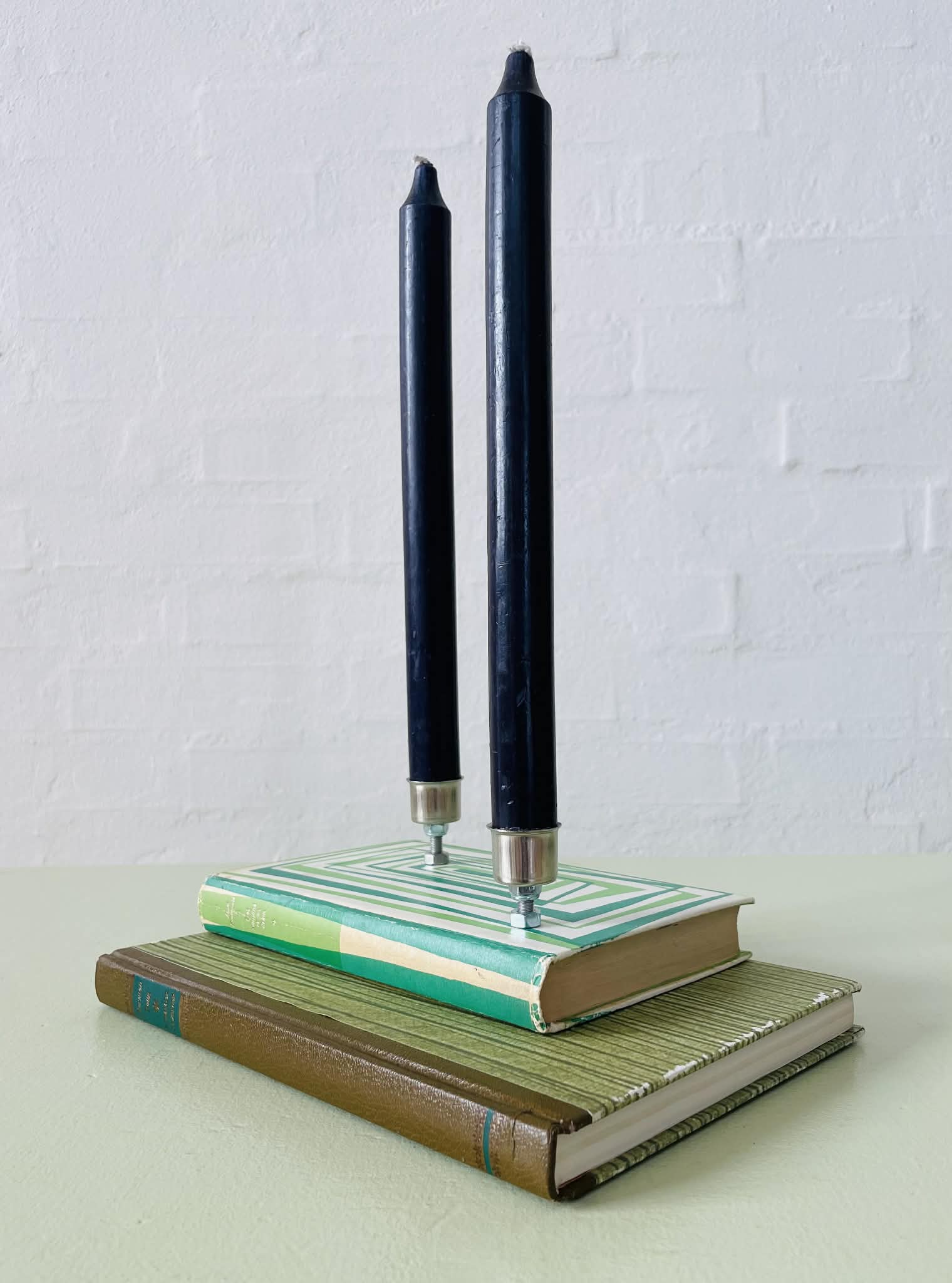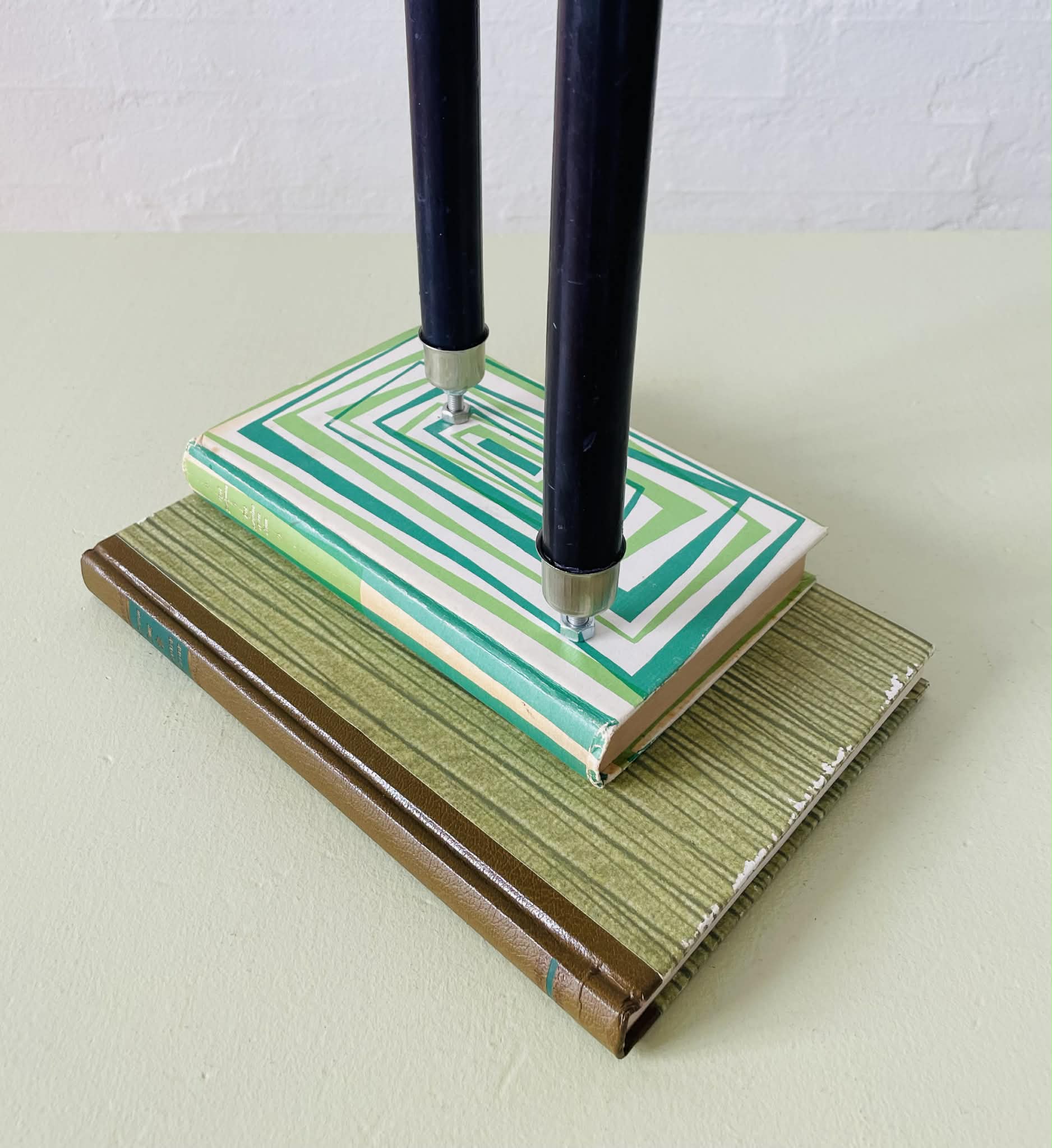 Boglysestage (“Aksel Sandemoses “Det svundne er en drøm” og Herman Bangs “Sommerglæder”) lavet af to fine, ældre bøger og to lysholdere i metal til alm. størrelse stearinlys. Siderne er lakeret sammen, så man ikke kan åbne bøgerne. Bøgerne er af ældre dato, så de har masser af patina, hvilket kun gør dem endnu mere hyggelig. Sælges uden stearinlys.